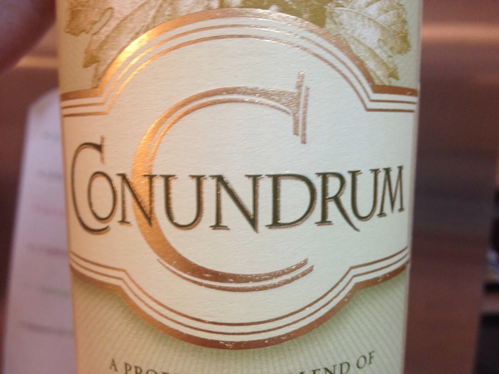 Wine. My favorite that I discovered at Ruth's Chris. Not one, but TWO bottles of Conundrum.
