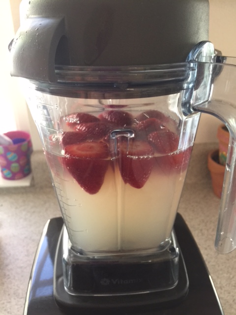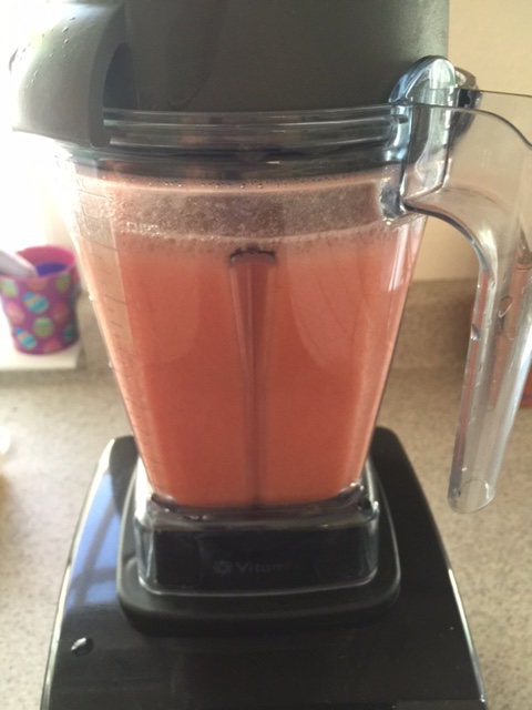 Another reason I now love my Vitamix.... those strawberries become totally incorporated into the lemonade. No chunks at all.