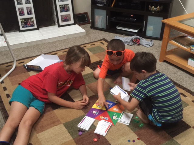 I was delighted that Kyle thought to take out a fun game for everyone to play. We've had this game Brain Quest for awhile but only recently has it appealed to Owen who's six. With the culture of electronics in our lives it is kind of a nice to see how readily they enjoyed playing this game together. But, all good things must come to an end. So when things started to wind down with the game (you can read that as some boredom set in or they began bickering, frankly I don't remember), I suggested we make a snack.