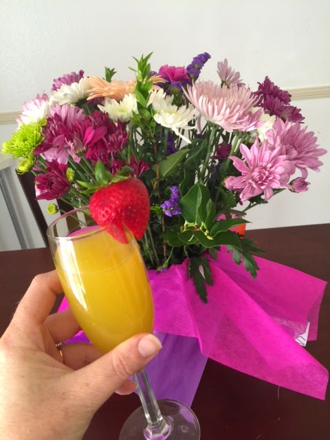 I remembered I had purchased something special for myself a few weeks ago just for this morning... mango mimosa! Just as I began to sip said mimosa, the kids play fighting had turned to real fighting.... but this is not the day for me to resolve their bickering. Cheers!