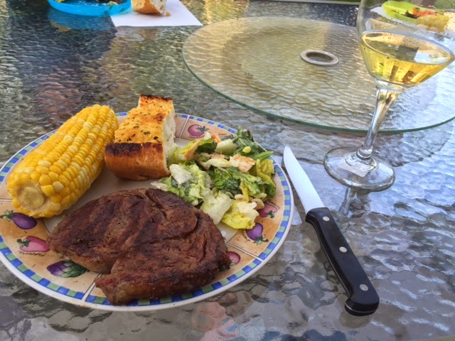 Then it was off to have dinner.... at home. Cory grilled steak and it was delish! I got to open another Mother's Day gift, my favorite bottle of wine, Conundrum.